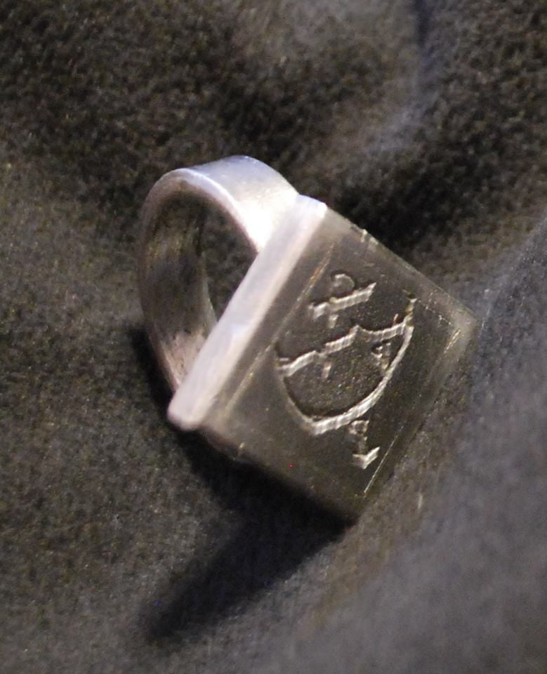 The first talisman: "Placing himself therein, the old man said to me: "Go near your spirit. I give you permission for I know that you have a pure heart, that you have never been guilty of any action which would make you blush. If that were not the case, you would be struck down dead on entering this circle. Go, my son." I followed his instructions. He opened the casket where all the rings were to be found, and drew out that one shown as well as the talisman which he placed in my hands. "This one will serve to conjur the celestial and infernal powers. Put the ring on your finger and the talisman over your heart, then pronounce the following words