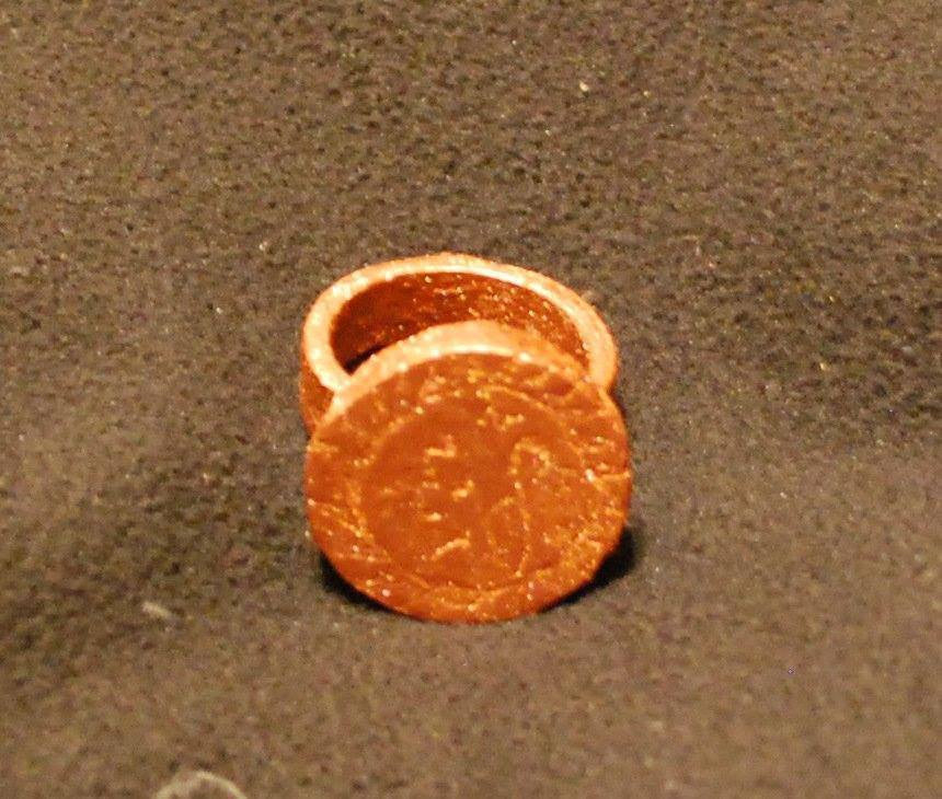 The first talisman: "Placing himself therein, the old man said to me: "Go near your spirit. I give you permission for I know that you have a pure heart, that you have never been guilty of any action which would make you blush. If that were not the case, you would be struck down dead on entering this circle. Go, my son." I followed his instructions. He opened the casket where all the rings were to be found, and drew out that one shown as well as the talisman which he placed in my hands. "This one will serve to conjur the celestial and infernal powers. Put the ring on your finger and the talisman over your heart, then pronounce the following words