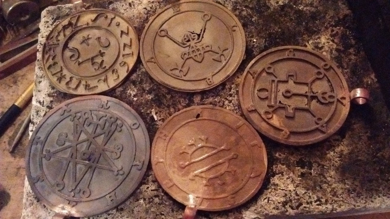 Any listed in the Goetia Demon cast seal 2 inches. These are lost wax cast seals of the Daemon Demons of the various grimoires. These are PURE metal which is actually cast, starting with a wax version, which is much higher quality than the 3D printed versions (using metal powder and plastic) you find around the internet. The ones I have ready to go take approximately 2-3 weeks for me to get the wax all ready and cast it. The ones which aren't listed but are under the "other" option take 8 weeks, because well, I still haven't carved their waxes yet! I simply don't know which of the couple hundred Daemon Demon seals folks might want the most ;). They are pictured as just discs here, and you can get them like this if you prefer, but I do either case a bail onto them, or solder one on (depending on the metal used, gold can't cast properly like that for example), so you can use the seal as a pendant.I have been practicing magic for 25 years now. 23 of those years, DAILY! I was fortunate enough to be able to purchase lost wax casting equipment, as well as a few jewelry courses to help enhance my abilities. Though please do keep in mind, these are HAND MADE, so there will of course be slight imperfections due to this. Though no worries, if the actual cast comes out funny looking, I will of course cast another; what I'm referring to is the original design work.I have been selling online for myself, and one other, for 11 years now, and have only had about 6 complaints/demand a refund over that time. (though my work has also improved since then too :D )